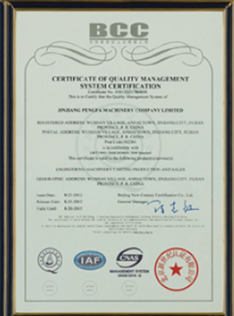 鵬發(fā)機(jī)械鑄造于2012年8月通過質(zhì)量管理體系ISO9001認(rèn)證,2017年通過環(huán)境管理認(rèn)證體系GB/T24001-2016ISO14001認(rèn)證。鵬發(fā)機(jī)械2020年11月通過福建省高新技術(shù)企業(yè),2020年12月通過國家高新技術(shù)企業(yè),且榮獲22年度科技小巨人企業(yè),獲23年創(chuàng)新型中小企業(yè)等榮譽。